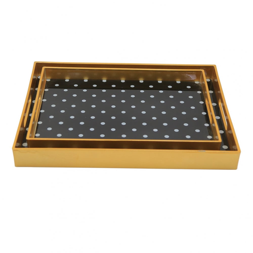طقم طفرية مستطيل اسود منقط اطار ذهبى
